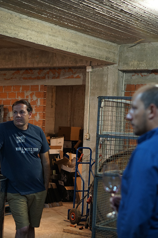 Ο Γιάννης και η Ελένη (και ο Δημήτρης βεβαίως βεβαίως) μας φιλοξένησαν στο σπίτι τους (όπου άλλωστε βρίσκεται και το οινοποιείο). Εκεί συζητήσαμε επί παντός οινικού επιστητού, για τα καλά και τα κακά του ελληνικού χώρου, μιλήσαμε για το ΣΜΟΕ, όπου άλλωστε ο Γιάννης είναι και αντιπρόεδρος και βέβαια δεν παραλείψαμε να δοκιμάσουμε κρασιά του κτήματος (αυτό έλειπε άλλωστε). Και τα συνοδέψαμε με πεντανόστιμους μεζέδες από την χρυσοχέρα Ελένη. Η λίστα των κρασιών που δοκιμάσαμε είναι μεγάλη, αλλά εδώ θα ανεφέρουμε μερικά μόνο από τα διαμαντάκια: